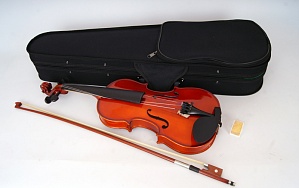 В комплекте: Футляр для скрипки. Канифоль. Круглый смычок из бразильского дерева.