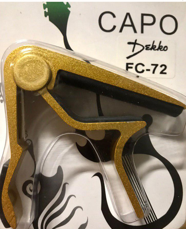 Каподастр гитарный универсальный, цвет - жёлтый, прорезиненная поверхность, легок и быстр в использовании, не требует никаких дополнительных элементов и крепится прямо на гриф гитары одной рукой, в блистере