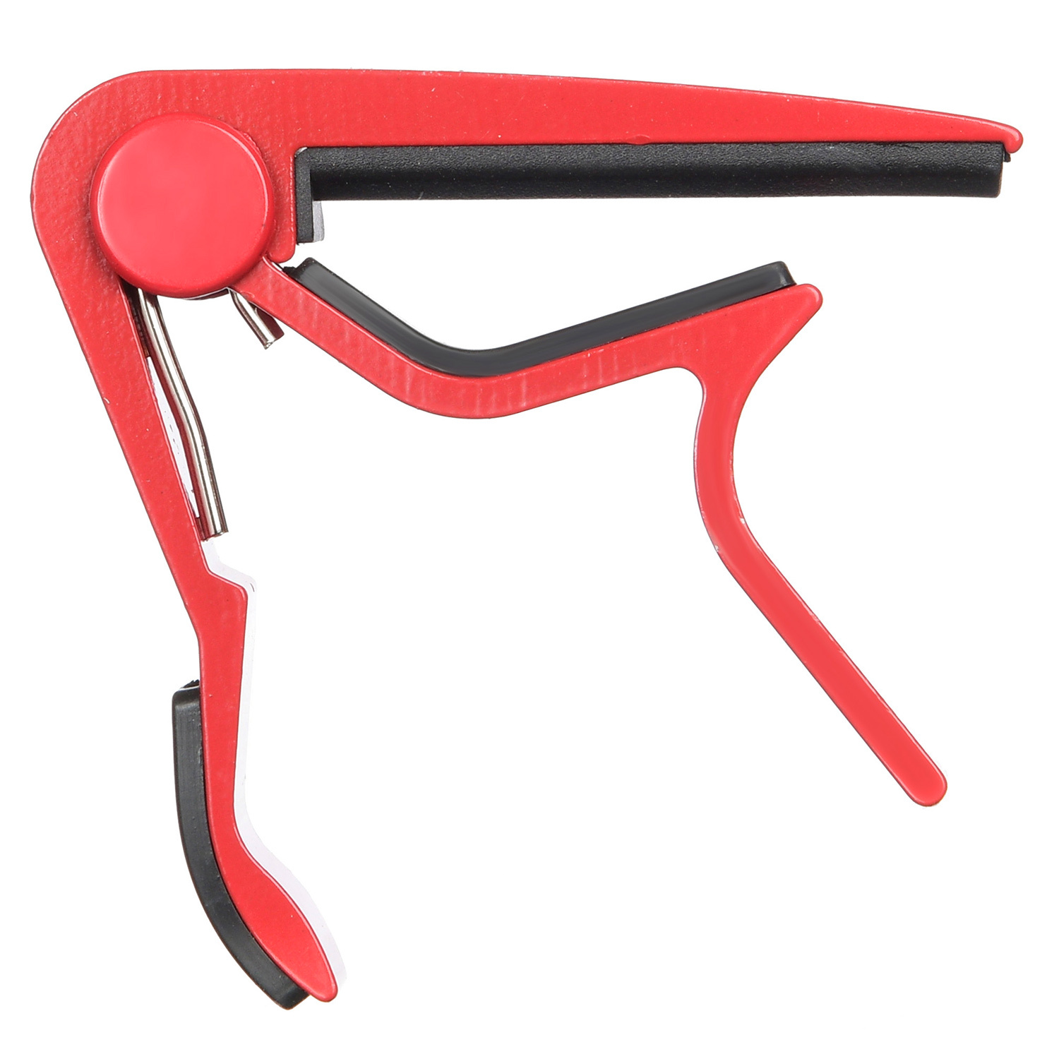 Каподастр гитарный универсальный, цвет - красный, прорезиненная поверхность, легок и быстр в использовании, не требует никаких дополнительных элементов и крепится прямо на гриф гитары одной рукой, в блистере