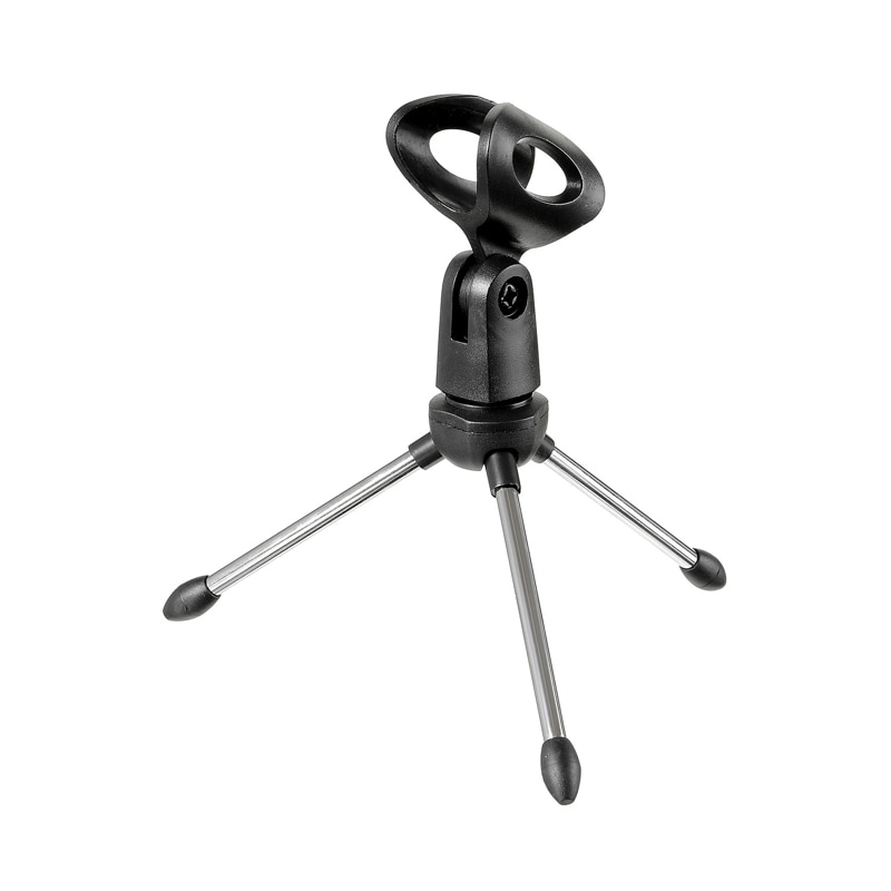 Стойка микрофонная настольная, складная, основание - тренога, металл, диаметр трубок 6 мм, держатель микрофона в комплекте, высота 17 см, цвет - чёрный