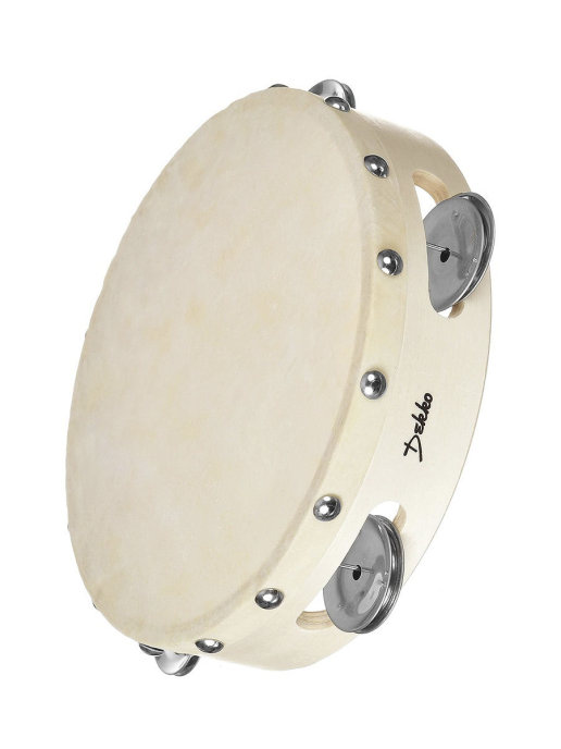Тамбурин деревянный корпус, круглой формы, диаметр 10 см, деревянный корпус, 3 пары тарелочек.