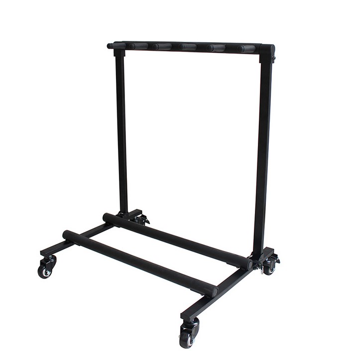 Напольная Стойка Тележка, вмещает до 5 гитар. Высококачественная металлическая конструкция обеспечивает надежную опору для ваших инструментов. Накладки из пеноматериала защитят отделку инструментов. Складывается для удобства хранения и транспортировки. Большие колеса обеспечивают удобное перемещение. Размеры: 760 х 480 х 650мм.