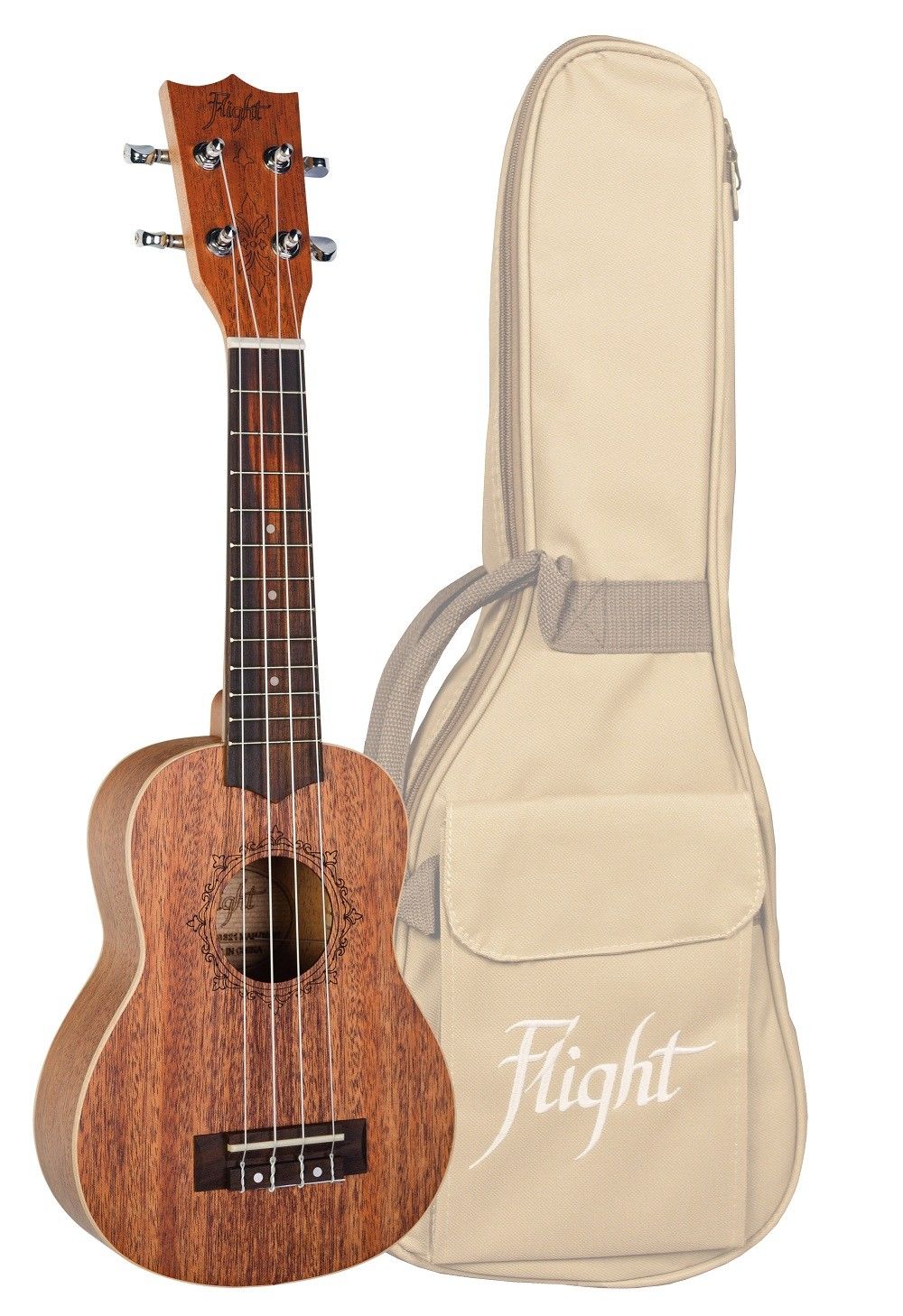 FLIGHT DUS 321 MAH/MAH – гавайская гитара из дизайнерской серии DU, имеющая оригинальное оформление розетки. Представленная модель – элегантный инструмент размера сопрано (S), выполненный в натуральном цвете красного дерева.