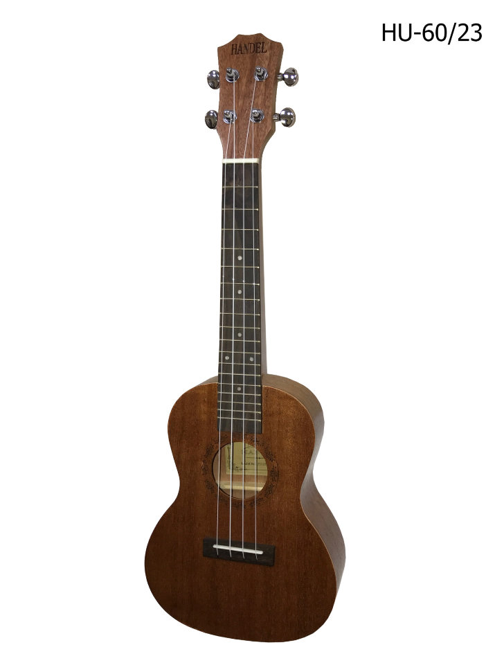 4-х струнная гавайская гитара, Верхняя дека – махагон, нижняя дека и обечайка – махагон, накладка на гриф и струнодержатель – палисандр, колки – хром, отделка – матовый лак, струны - нейлон