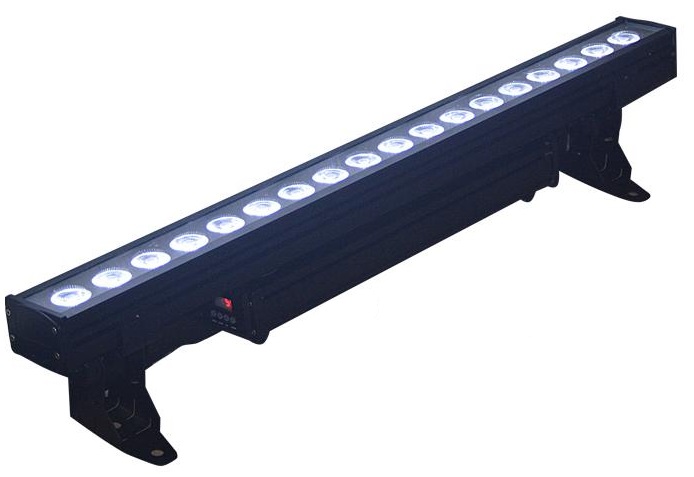 MVT WP1810 - Линейный светодиодный прожектор (Pixel bar) 18*10W 4в1 RGBW LED светильник с независимым управлением каждым светодиодом (функцией Pixel Control) и крепежем, 2 силовых кабеля длиной 1м, два 3-контактных сигнальных кабеля, 2 струбцины и страховочный тросик, 4 пружинных быстросъемных фиксатора на торцах прибора (по 2 с каждой стороны) позволяют жестко и надежно соединять приборы в единую "бесконечную" линию.