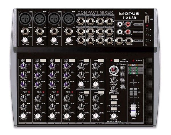 OPUS I12USB - Недорогие микшерные пульты OPUS идеально подойдут при необходимости выполнить несложные задачи по подключению и микшированию небольшого количества звукового оборудования.