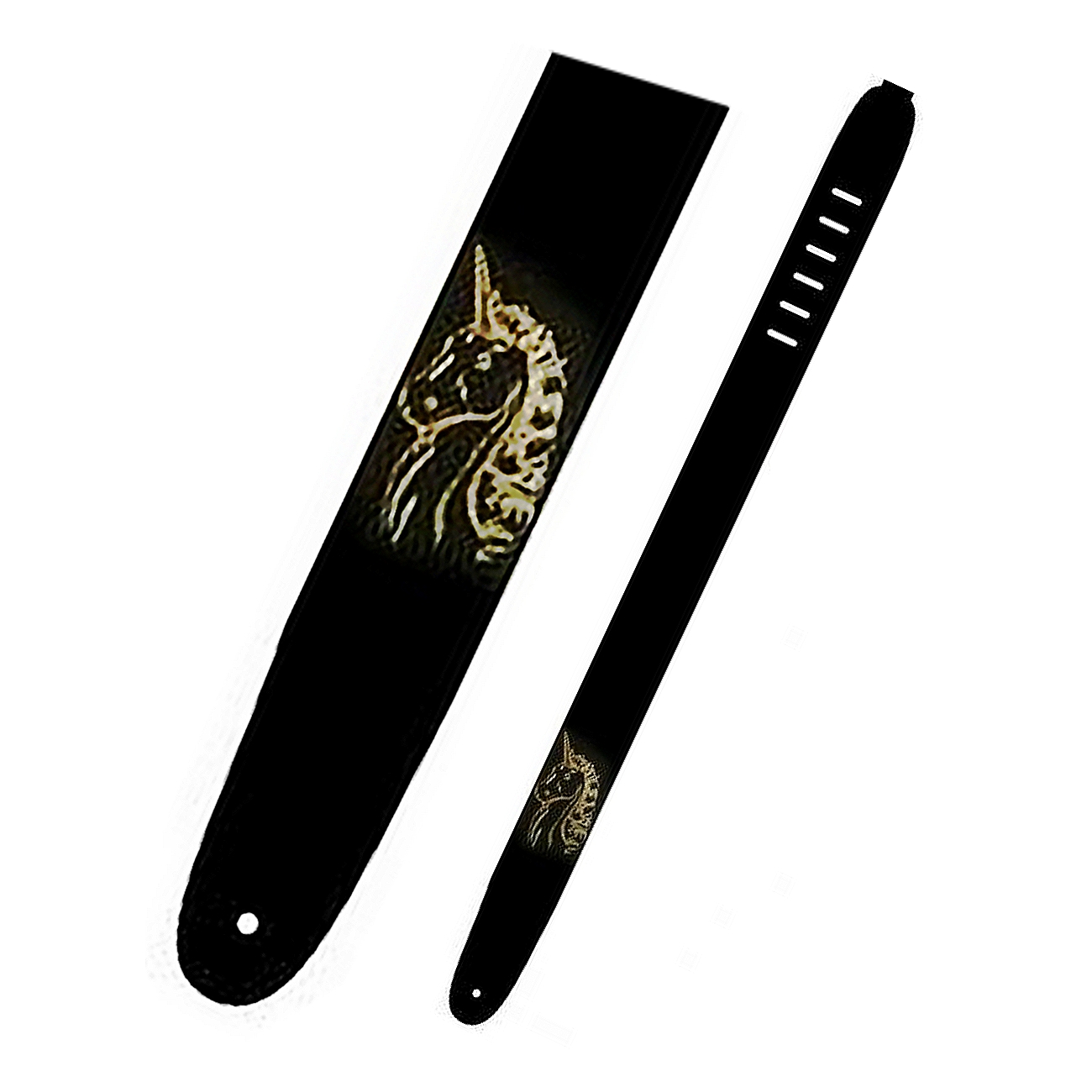 Кожаный ремень (2,5") для гитары (золотой единорог)