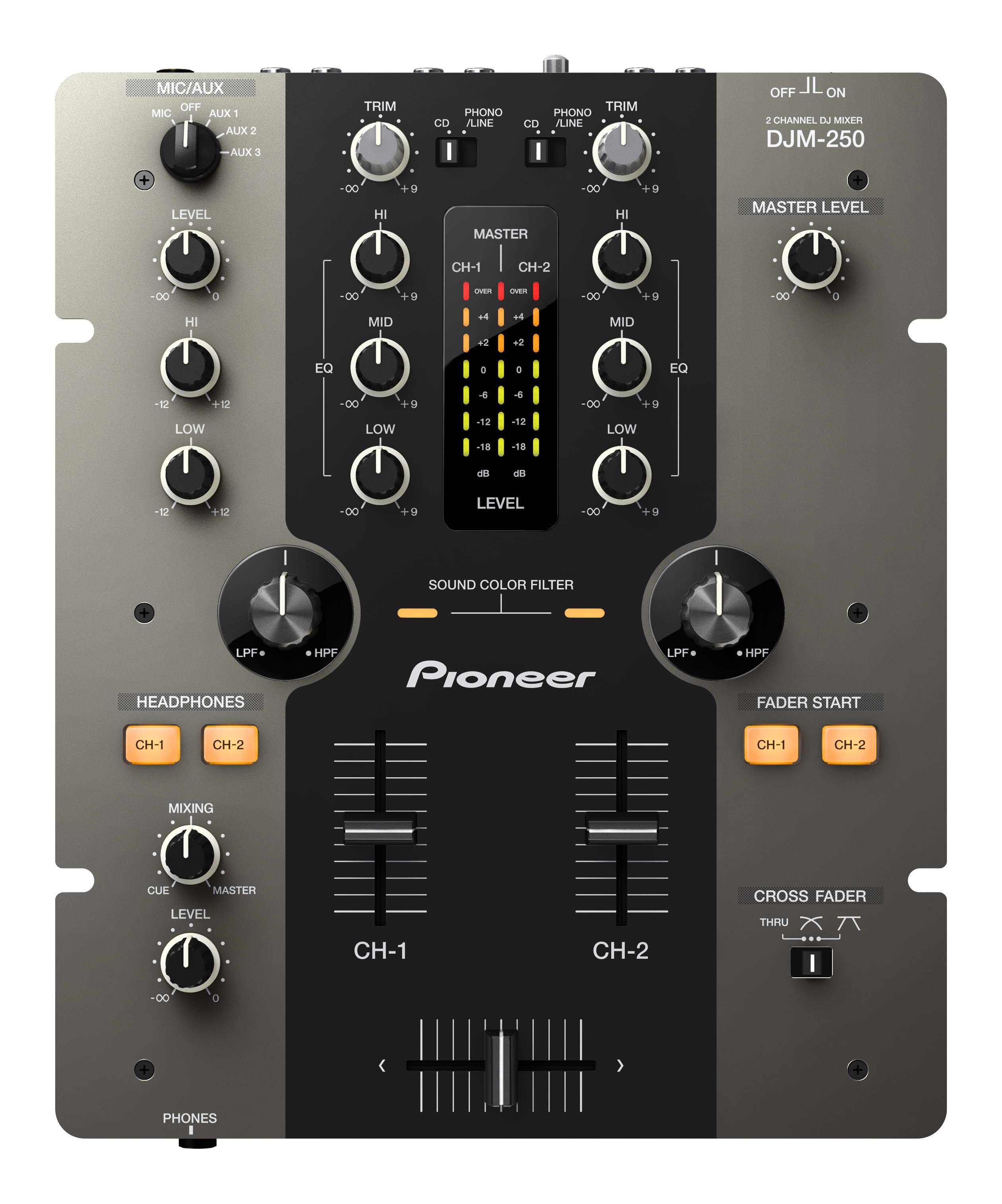 Начните создавать ваши собственные музыкальные миксы с двухканальным микшером начального уровня Pioneer DJM-250. Предлагая функциональность профессионального микшера, но спроектированный для начинающих ди-джеев, компактный Pioneer DJM-250 имеет эффекты фильтра для двух каналов, передовые для индустрии, восемь различных входов и сбалансированные выходы XLR.