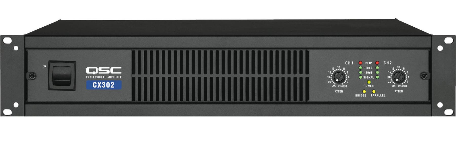 QSC CX302 - 2-канальн.; 2х200Вт/8Ом; 2х325Вт/4Ом; 2х600Вт/2Ом; возможность 2x400Вт/100V выхода при добавлении IT-42 (опционально); 20Hz - 20kHz; 9,5кг, 2U.