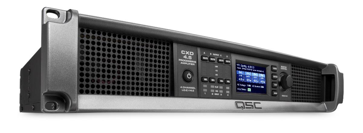 QSC CXD4.5 несет на борту массу современных технологий для лучшей работы многоканальных систем. Технология FAST (Flexible Amplifier Summing Technology) распределяет суммарную мощность между одним, двумя, тремя или четырьмя каналами, за счет чего достигается оптимальная производительность. Встроенный DSP-процессор предлагает большой набор функций: кроссовер, фильтры параметрического эквалайзера, дилэи и лимитеры; всё это устраняет необходимость во внешних акустических процессорах. Есть 20 заводских пресетов настроек с возможностью редактирования и сохранения в 50 ячеек. Встроенная система помощи упрощает настройку усилителя, позволяя выбрать необходимую конфигурацию из списка самых популярных пассивных громкоговорителей.