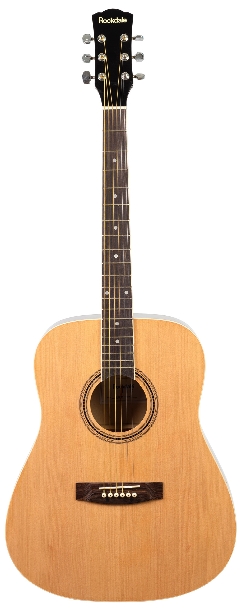 ROCKDALE AURORA 120-N - это шестиструнная акустическая гитара без звукоснимателя. Инструмент имеет большую деку типа "дредноут" с насыщенным звучанием. Акустические и классические гитары ROCKDALE имеют приятное, сбалансированное звучанием и доступную цену. Эта гитара станет хорошим приобретением для начинающих музыкантов и тех, кто хочет приобрести недорогой инструмент для персонального использования. Гриф гитары из клена, накладка на гриф - клен. Отделка деки глянцевая. Цвет гитары натуральный.