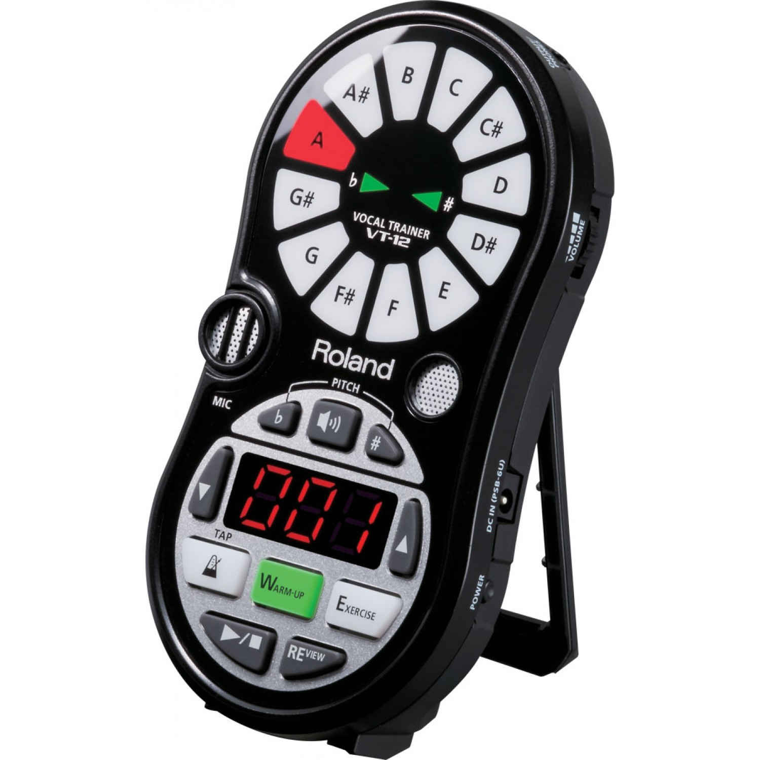 Roland VT-12 - способствует совершенствованию вокального мастерства. Он может пригодиться и в музыкальной школе, и дома, и в студии звукозаписи, и в гримерке перед сценой. Содержит курс по методике колледжа Беркли (Бостон), включающий треки аккомпанемента (по разрешению The Publishing Division of Berklee College of Music), а также 50 этюдов классических вокальных уроков Concone.