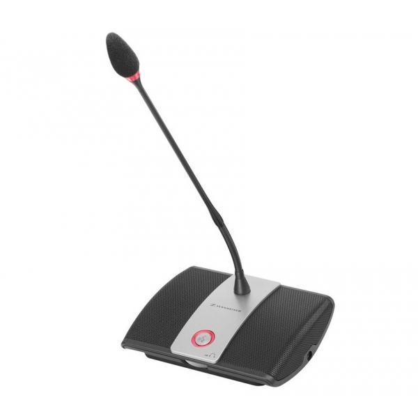 Пульт делегата Sennheiser ADN D1 сочетает в себе превосходную ясность речи и современный дизайн. Суперкардиоидный микрофон KE 10 на держателе Gooseneck эффективно снижает окружающий шум. Аудио система из двух громкоговорителей гарантирует равномерный уровень звука в зале заседаний. Коммутация пультов и центрального блока осуществляется с помощью кабелей CAT5 (через интерфейс RJ45).