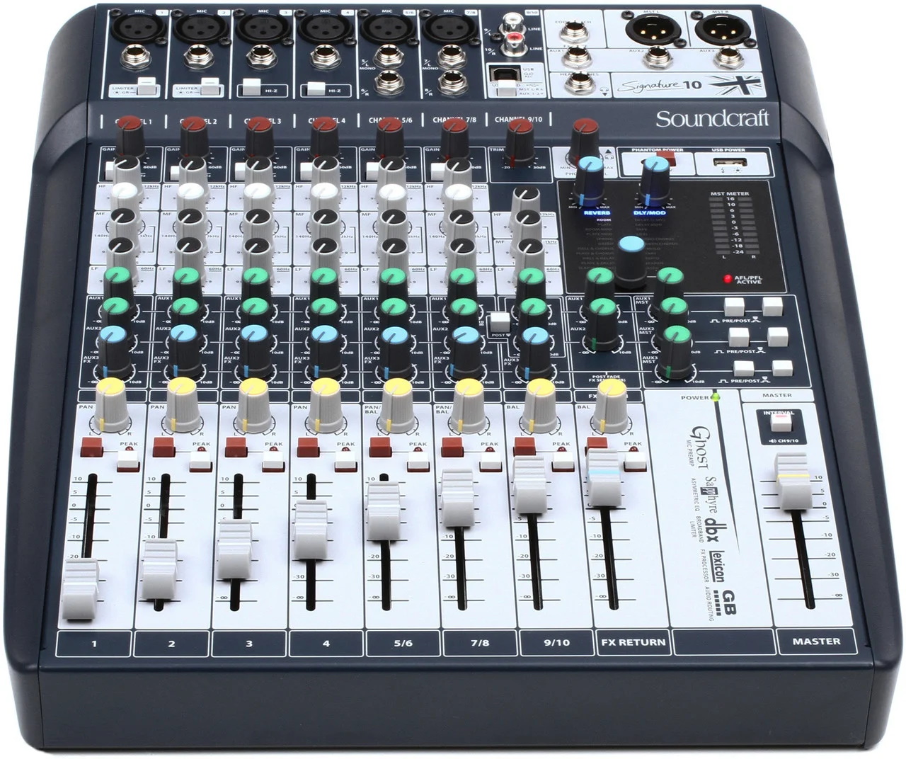 Soundcraft Signature 10 - высокопроизводительный 10-канальный аналоговый микшер в маленьком формате и со встроенными эффектами. Все микшеры серии Signature объединяют культовые SOUNDCRAFT Ghost микрофонные предусилители, вышедшие из линейки лучших профессиональных пультов для предоставления экстраординарного аудио качества с высоким запасом мощности, широким динамическим диапазоном и необыкновенной четкостью с превосходным соотношением сигнал шум. Кроме того во всех микшерах используется Soundcraft Sapphyre ассиметричный эквалайзер для идеальной корректировки каждого элемента вокала и инструмента в миксе с несомненной музыкальностью, присущей всем пультам компании, плюс технология аудио маршрутизации GB серии, пользующаяся большой популярность в клубах по всему миру.