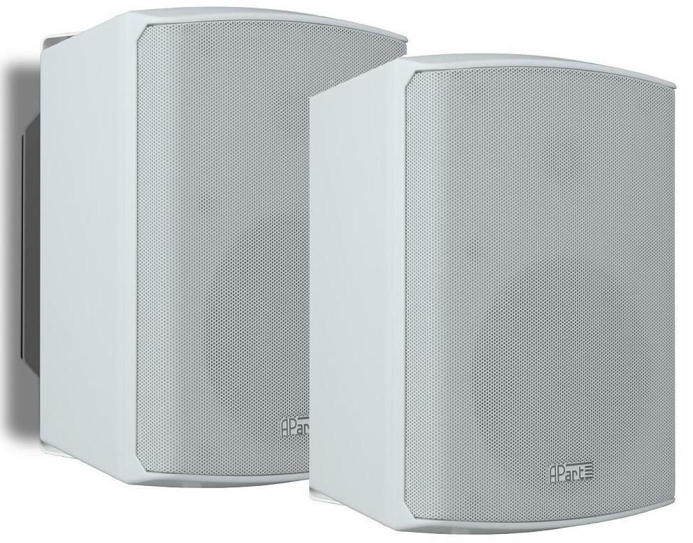 APart SDQ5P-W - набор из 2-х акустических систем, первая из которых имеет встроенный стерео усилитель, вторая - пассивная и подключается к усилителю первого громкоговорителя.