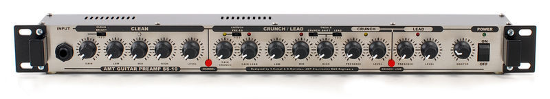Трехканальный гитарный предусилитель SS-10 предназначен для использования в студии и для концертной деятельности. Четырехкаскадный канал предусилиения (используются две лампы 12АХ7) позволяет получать широкий диапазон звуков: от современного агрессивного металла до классического звучания 80-ых.