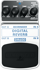24-битные стереоэффекты реверберации включая Spring, Plate, Hall, Room, Gate и Modulate Регуляторы Level, Tone и Time для гибкого формирования тембра Светодиодный индикатор включения эффекта и проверки батареи Питание от батареи 9 В или сетевого адаптера BEHRINGER PSU-SB (в комплект поставки не входит) Бесшумное включение/выключение благодаря первоклассному электронному выключателю Высококачественные компоненты и исключительно надёжная конструкция гарантируют долгий срок службы