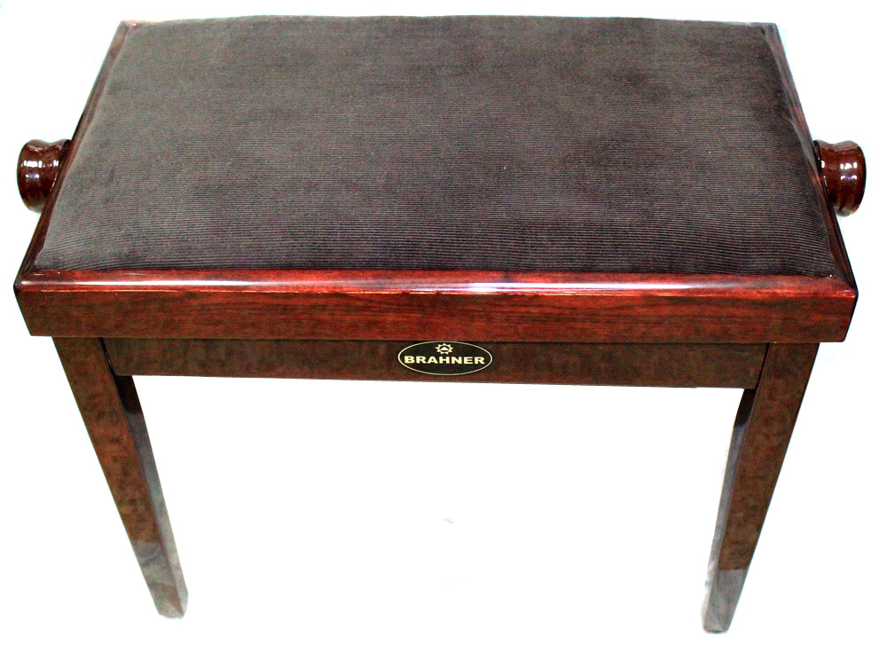 BRAHNER BP-140/MH - Банкетка деревянная для рояля/пианино, цвет - МАХАГОН (красное дерево), глянцевая, подъемный механизм регулировки высоты, прямые ножки, размер - 56х33х48-58, обивка - кож. зам (тёмно-коричневый).