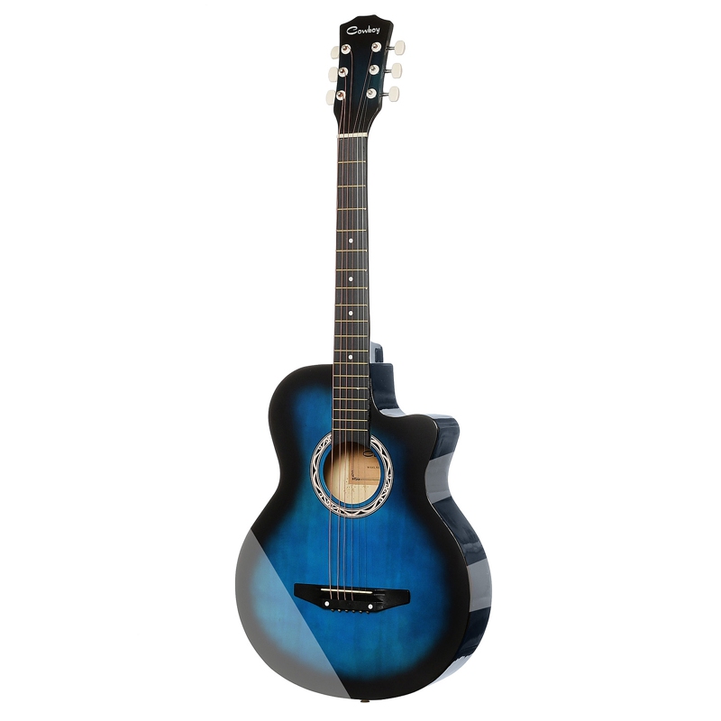Гитара акустическая с ВЫРЕЗОМ, с металлическими струнами, верхняя дека - липа, нижняя дека и обечайка - липа, гриф - клён, накладка - клён, порожек - клён, цвет - синий бёрст
