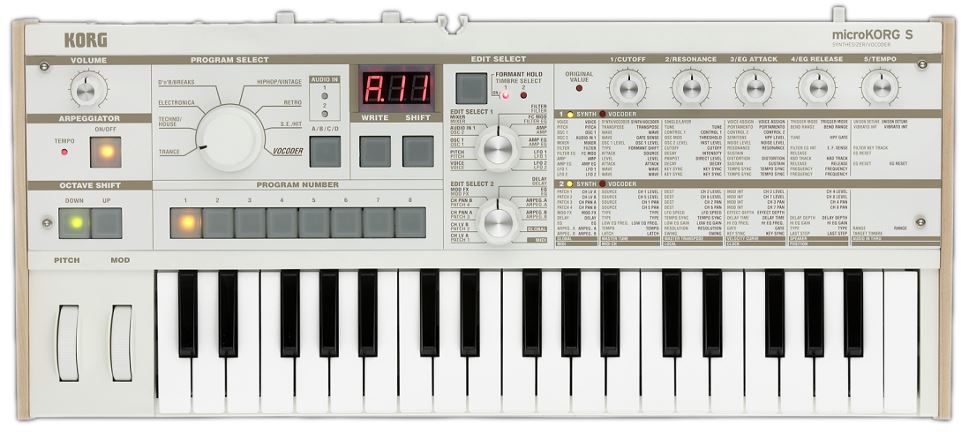 KORG microKORG S MK-1S – обновлённая версия знаменитой модели синтезатора/вокодера 2002 года «microKorg». Новый синтезатор обладает тем же широким функционалом, что и первая модель. Он оснащён 37 мини-клавишами, полифония – четырёхголосная. Модель имеет современный эргономичный дизайн и получила ряд новых современных функций. Синтезатор заключен в прочный корпус элегантного белого цвета. Память синтезатора разделена на несколько отдельных банков, двух из которых хранятся 128 оригинальных программ, идентичных первой модели microKorg, третий банк содержит 64 новых современных программы, ещё один банк предназначен для сохранения собственных программ пользователя, также 64 программы. Одна из удобных новых опций microKORG S MK-1S позволяет моментально получать доступ к избранным звукам. Электропитание синтезатора осуществляется от сетевого адаптера. Он также может работать полностью автономно, питаясь от батарей. Встроенная акустическая система выдаёт звук прекрасного качества. Возможности коммутации включают 3 разъёма MIDI, по 2 аудио входа и выхода, а также разъем для подключения наушников.