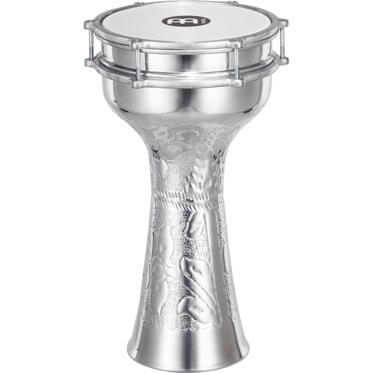 Алюминиевая дарбука с красивой ручной чеканкой и бубенцами, которые значительно расширяют спектр звучания и добавляют приятный дребезжащий эффект.