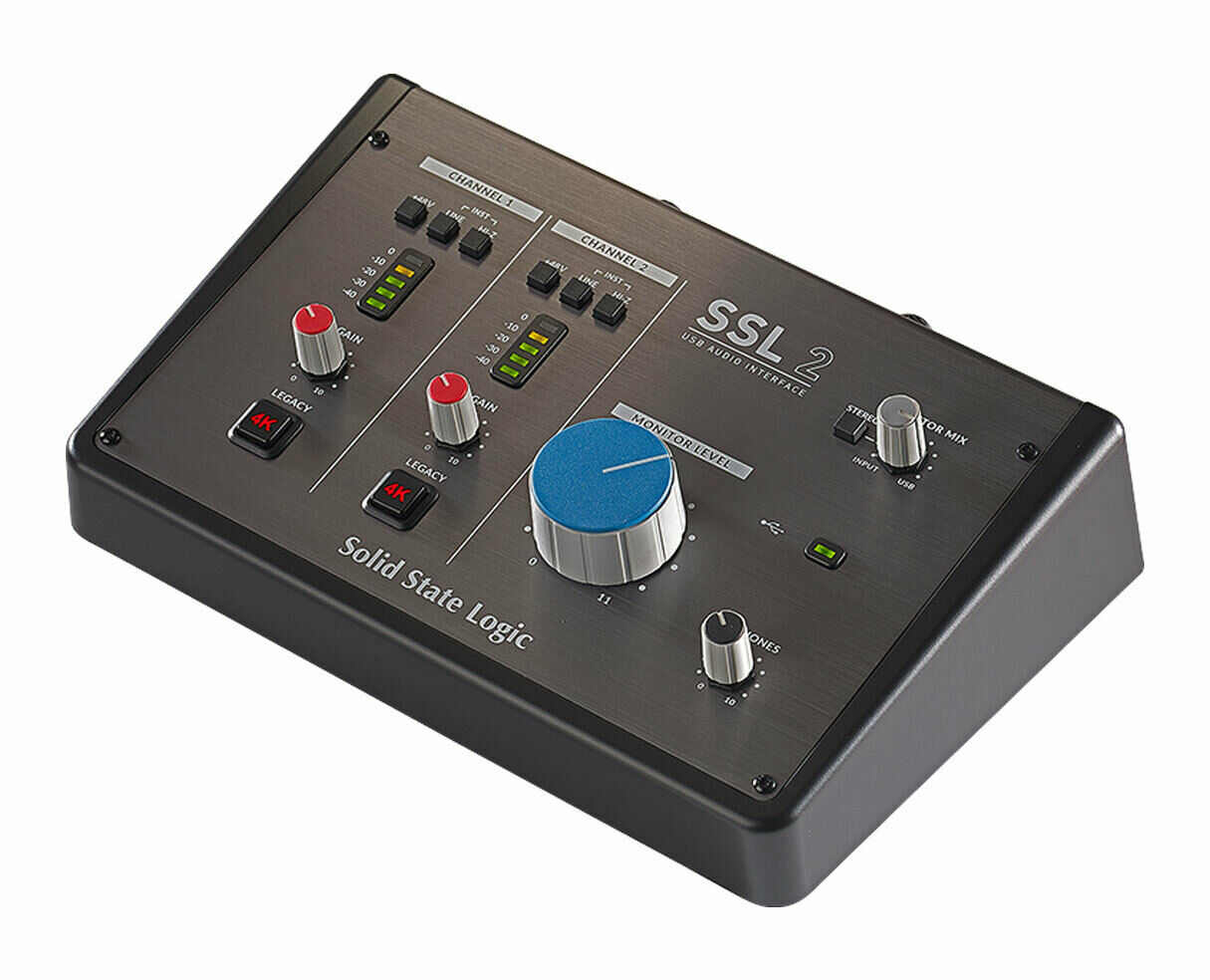 Solid State Logic SSL2 - 2-канальный компактный USB-С аудиоинтерфейс. Модель оснащена 2 качественными предусилителями с усилением до 62 дБ и характеристикой шума EIN -130,5 дБ, и преобразователями AKM, поддерживающими работу с режимами частоты дискретизации до 24 бит 192 кГц. Режим 4K Legacy эмулирует звук тракта аналоговой консоли SSL 4000. Входы могут принимать сигнал с микрофонов, инструментов и линейного уровня. В схемотехнике устройства использованы качественные комплектующие / компоненты, а также специально подобранные дискретные малошумящие транзисторы. Имеются регуляторы усиления каналов и громкости наушников, кнопки 48V/Line/Hi-Z/4K, общая ручка громкости и регулятор Monitor Mix. Коммутационные возможности модели представлены выходом для наушников, 2 XLR/TRS входами, 2 TRS L/R выходами и портом USB-C. Питание осуществляется по USB. Интерфейс отличается надежной сборкой, прочным корпусом и качественными комплектующими — от разъемов Neutrik до потенциометров Alps. В комплект входит ПО от Avid, Ableton и Native Instruments и 1.5 Гб семплов от Loopcloud. Помимо стороннего софта, SSL дарит пользователям собственные виртуальные инструменты обработки Native channel strip: Vocalstrip 2 и Drumstrip.