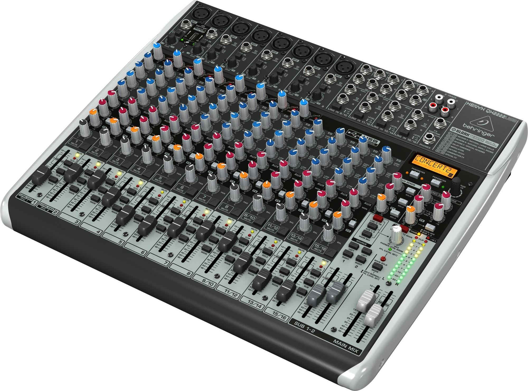 Behringer QX2222USB - Микшер, 16каналов, 3-х полосный эквалайзер DSP KLARK TEKNIK, USB интерфейс.