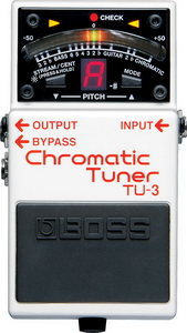 Вот оно – развитие и плод эволюции самого популярного сценического тюнера BOSS TU-2. Новый тюнер TU-3 создан в мощном корпусе компактной педали, 21-сегментный индикатор которого имеет специальный режим High Brightness, чтобы быть ясно видимым в сценических софитах или на прямом солнечном свету. Тюнер может работать как в хроматическом режиме, так и в режиме гитары или баса, а функция AccuPitch подтверждает точность настройки ясным визуальным сигналом. TU-3 включает в себя индикацию названия ноты на специальном индикаторе, поддерживая, в том числе и 7-струнную гитару и 6-струнный бас, а режим Flat Tuning может понизить строй до 6 полутонов вниз.
