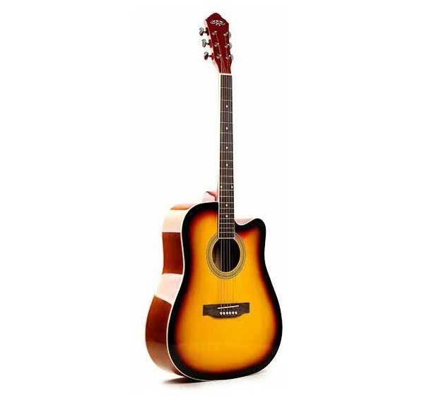 Гитара акустическая 41”, с ВЫРЕЗОМ, тип Dreadnought, верхняя дека – липа, нижняя дека и обечайка - липа, накладка на гриф и струнодержатель – палисандр, колки-никель, отделка-глянцевый лак, цвет - санберст