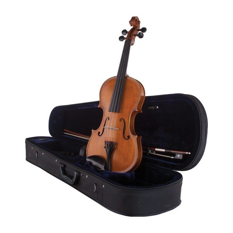 Скрипка CREMONA 15w 1/2 КОМПЛЕКТ (кейс + смычок) самая популярная серия, модель Страдивари, верхняя дека – ель, шейка, нижняя дека и обечайка – клен, принадлежности – черное дерево, струнодержатель с 4-мя машинками, отделка – “Colour-Washed”