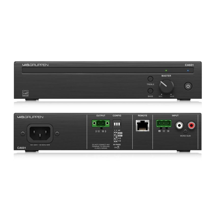 Lab.gruppen CA601 - Коммерческий 60-ваттный усилитель обеспечивает идеальное решение для инсталяций, требующих отличного звучания распределенного звука в сочетании с энергосбережением и сниженными эксплуатационными расходами. Способный обеспечивать высококачественный звук в конфигурациях громкоговорителей Low-Z (4/8 Ом) и High-Z (70/100 В), обеспечивающих исключительную гибкость на каждом канале, CA601 прост в установке и эксплуатации, даже для нетехнического персонала. Проще говоря, CA601 идеально подходит для баров и ресторанов, торговых центров, отелей, корпораций, учебных заведений и других мест, нуждающихся в фоновой музыке или в системе громкой связи.