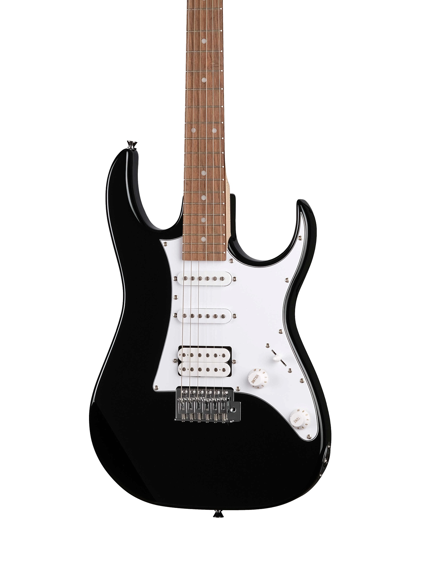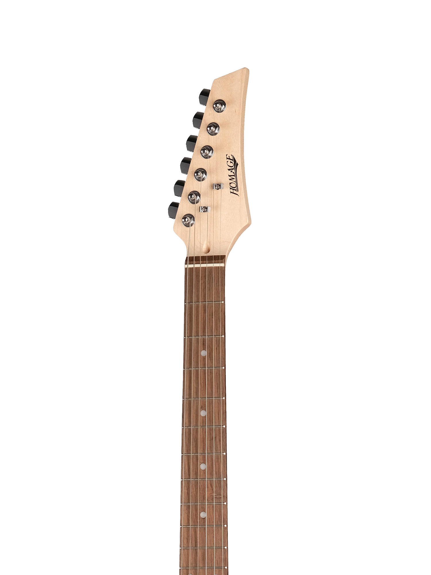 Homage HEG340BK Электрогитара форма суперстрат. Мы рекомендуем начинающим гитаристам выбирать гитары данной формы, так как она имеет лучшую, по нашему мнению эргономику. Гитара имеет два звукоснимателя, так называемых сингла и один хамбакер. Данное сочетание звукоснимателей позволяет играть большинство стилей музыки.