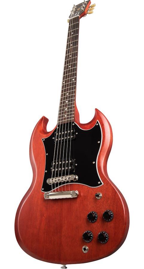 GIBSON SG TRIBUTE VINTAGE CHERRY SATIN - это шестиструнная электрогитара популярной линейки SG. Эта гитара имеет не только несколько облегченную деку, но и стильный, классический дизайн. Этот инструмент обладает шикарным стилем и премиальным, классическим звучанием. Гитара под правую руку музыканта. Цвет гитары - вишня. Этот классический инструмент полностью оптимизирован к современным музыкальным требованиям самых изысканных музыкантов.