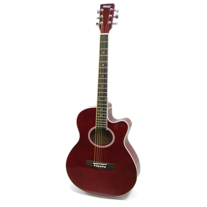 Верхняя дека - ламинат ели, задняя дека и обечайки - ламинат, гриф - клен, накладка грифа - палисандр, бридж - палисандр, колковая механика - хромированная, окантовка - 5-слойный кант, цвет- красный.