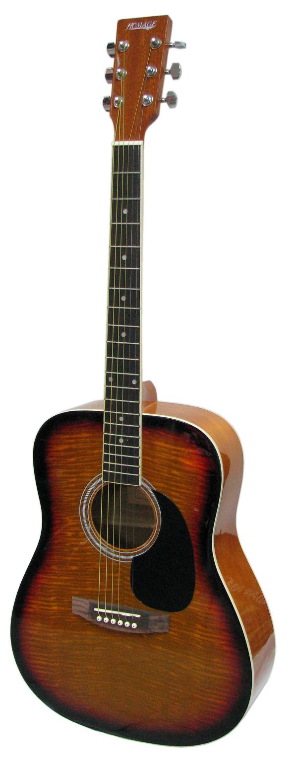 Homage - китайский производитель музыкальных инструментов. Производство нацелено преимущество на изготовление струнных инструментов, гитары акустические, гитары классические, электрогитары, бас гитары. Отличное качество гитар фирмы Homage доказано временем, при изготовлении гитар на производстве используются только лучшие компоненты, а максимальные показатели по продажам позволяют снизить цену производства, благодаря чему на выходе получается качественный инструмент по низкой цене. Рекомендуем данный бренд для тех кто ищет недорогую но качественную гитару с хорошим звучанием и внешним видом