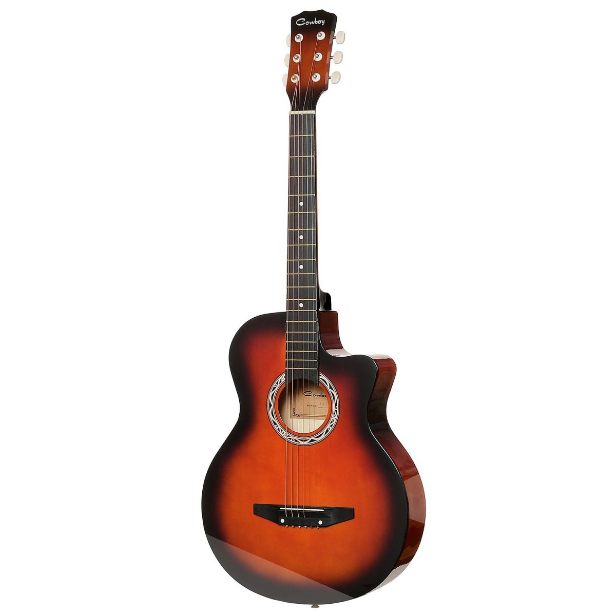 Гитара акустическая с ВЫРЕЗОМ, с металлическими струнами, верхняя дека - липа, нижняя дека и обечайка - липа, гриф - клён, накладка - клён, порожек - клён, цвет - санбёрст