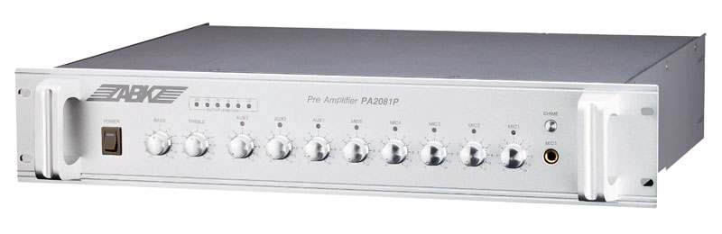 ABK PA-2081P - Предусилитель, микропроцессорное управление, вход: 5 микрофонных, 3 вспомогательных, 2 основных, светодиодный индикатор на каждый канал, функция сирены, заглушки, управление от ПK.