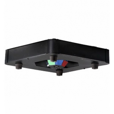 Светодиодный световой эффект, центральный эффект с вращающейся зеркальной пирамидой. 8 граней пирамиды покрыты цветными дихроичными зеркалами, по углам прибора расположены 4 белых диода, мощностью 3Вт каждый. Отражаясь от зеркал цветные лучи полностью заполняют помещение и создают эффект зеркального шара, подсвеченого со всех сторон.