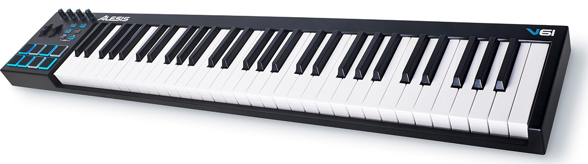 ALESIS V61 - мощный и интуитивный MIDI контроллер, который позволяет взять господство над программным обеспечением серией пэдов, ручек и кнопок. Благодаря 61 полноразмерной клавише чувствительной к скорости нажатия и кнопкам повышения/понижения октавы, вы расширяете клавиатуру до полного мелодического диапазона с бас линией, аккордами и мелодиями. Кроме того, контроллер имеет четыре назначаемые ручки и кнопки для управления плагинами эффектов и виртуальными инструментами: открывают и закрывают фильтры, регулируют уровень громкости, активируют эффекты, настраивают параметры и многое другое. 8 чувствительных к скорости нажатия пэдов с подсветкой предназначены для запуска клипов или проигрывания барабанных партий пальцами с необыкновенной отзывчивостью, а колеса тона и модуляции расширят выразительность вашего исполнения.