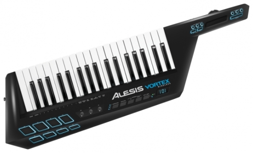 ALESIS VORTEX WIRELESS - представляет собой беспроводную MIDI-клавиатуру с акселерометром. Клавиатура имеет 37 клавиш с функцией послекасания. Для отображения состояния и функций контроллера есть небольшой цифровой дисплей. MIDI-клавиатура дает полный беспроводной контроль через беспроводное подключение давая полную свободу исполнителю. Клавиатура комплектуется виртуальным синтезатором Vortex-I Digital Virtual Instrument от компании SONiVOX. На грифе контроллера находится акселерометр, который позволяет использовать жесты для активации назначенных функций. Есть 8 драм-пэдов, многорежимный ribbon-контроллер, 3 назначаемых ручки, колесо Pitch-Bend и слайдер уровня громкости.
