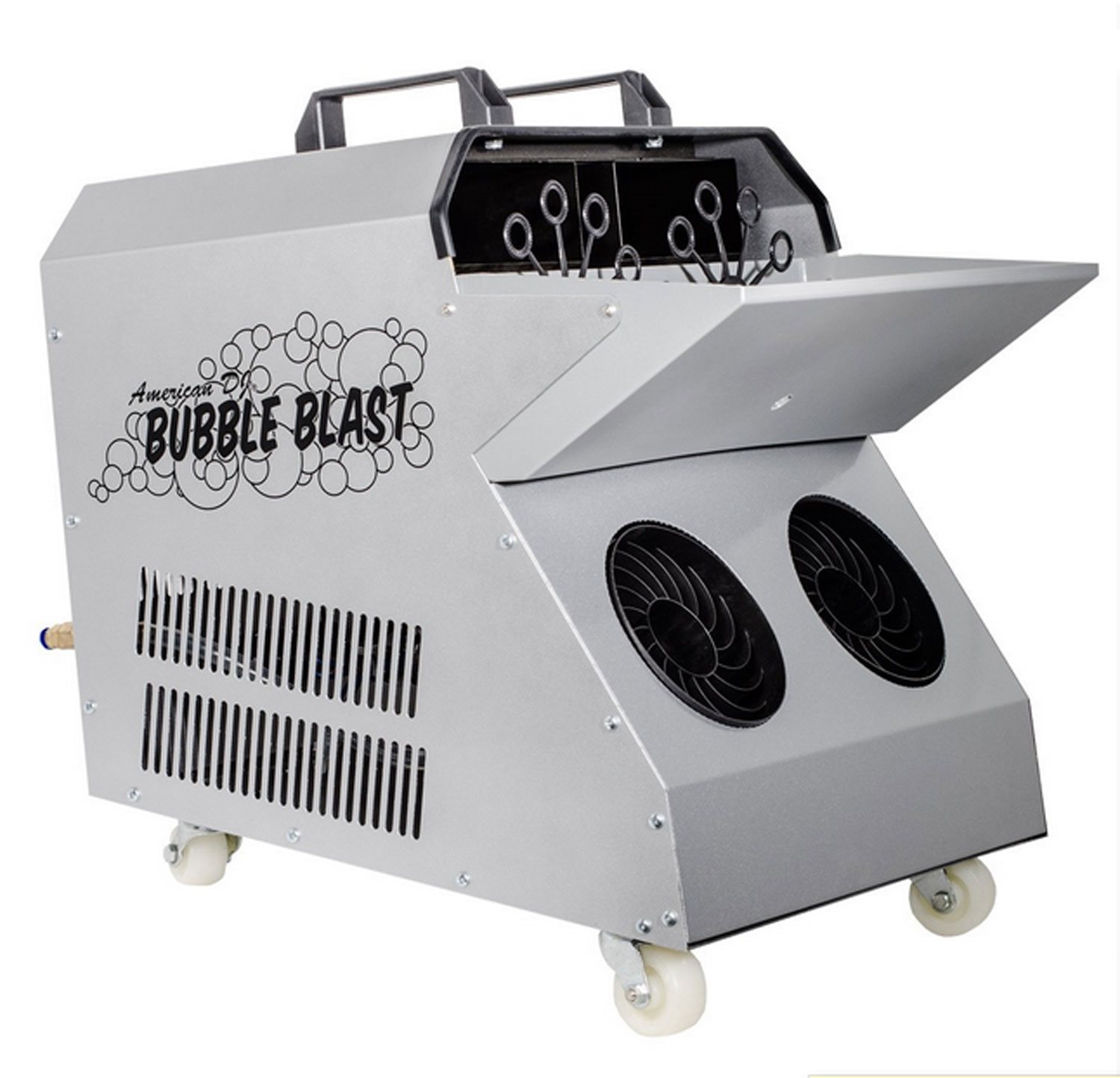 American DJ Bubble Blast - American DJ Bubble Blast генератор мыльных пузырей, мощные вентиляторы позволяет создавать больше 100 мыльных пузырей в минуту, двойная система вентиляторов направляет пузыри вверх в воздух, легкий доступ к емкости с жидкостью, использует любую жидкость для генераторов мыльных пузырей на водной основе, пульт ДУ в комплекте.