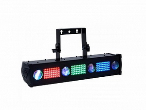 Включает в себя два эффекта: красные, зеленые и синие светодиоды с эффектом WASH и STROBO + 4 TRI COLOR Pinspot