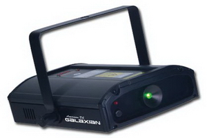 American DJ Galaxian Move мощный 2-цветный лазер на базе «вращающейся головы», зеленый луч - 30 мВт, красный - 80 мВт, угол раскрытия луча - 100°, микрошаговый двигатель, 3 режима работы: DMX, звуковая активация и Master/Slave, 4 режима создания эффектов, реверс Pan/ Tilt, 8 каналов DMX-512, PAN-540° / TILT - 270°, светодиодный дисплей, настройка скорости стробо, подключение DMX через разъемы типа XLR-3, 1/4" вход для подключения пульта ДУ, потребляемая мощность: 25 Вт, габариты: 223x190x 320 мм, вес: 4,5 кг