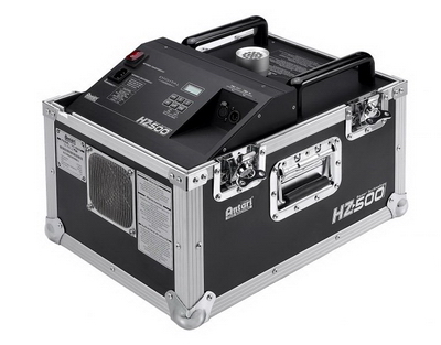 Hazer – это прибор, создающий довольно «тонкий» эффект прозрачной «долгоживущей» дымки, которая чаще называется – туман. С одной стороны эта дымка почти не мешает видеть происходящее на сцене даже с большого расстояния, с другой стороны, свет лазеров и других световых приборов в ней прекрасно «материализуется» в объёмные фигуры. Принципиальное отличие от дым-машины состоит в том, что Hazer не имеет термоэлемента, и аэрозоль распыляется воздухом, который подаётся в бак с невоспламеняющейся жидкостью под огромным давлением при помощи мощного компрессора. HZ-500 – это HZ-400 упакованный в кейс для транспортировки, что служит идеальным решением для туровой работы. Управляется машина от встроенного контроллера с информационным ЖК дисплеем и таймером и по протоколу DMX.