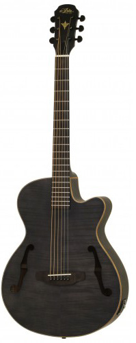 ARIA FET-F2 STBK – электроакустическая шестиструнная гитара с катавеем. Особенность этой гитары – вместо резонаторного отверстия (розетки) на корпусе присутствуют два винтажных выреза в форме буквы f, которые можно безбоязненно заклеить скотчем для устранения проблемы фидбэка. Акустически гитара звучит довольно негромко, что понравится тем, кто тихо поёт и не хочет раздражать окружающих. Ее можно использовать для аккомпанемента в самых разных стилях. У гитары матовое покрытие с открытыми порами, а также необходимые крепления для ремня. Входит в серию Elecord. Корпус ARIA FET-F2 STBK целиком выполнен из огненного нато, а гриф сделан из красного дерева. Накладка на гриф выполнена из ореха. У гитары 21 лад при стандартной длине мензуры в 650 мм. Ширина верхнего порожка – стандартные 43 мм. Бридж выполнен из ореха. Фурнитура черная. Наконец, установлен пьезозвукосниматель с активным предусилителем AEQ-4, в котором интегрированы эквалайзер, регулятор громкости, тюнер и режекторный фильтр. Особенности
