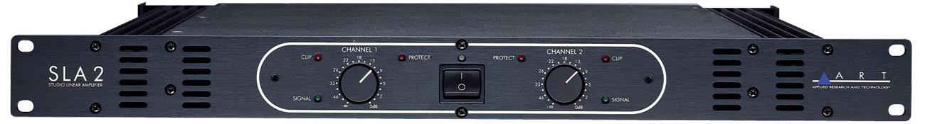 Двухканальный однорэковый транзисторный усилитель мощности SLA-2, предназначенный для студийного и инсталляционного использования, имеет мощность 200 Вт на канал при импедансе нагрузки 8 Ом, 280 Вт на канал при импедансе нагрузки 4 Ом, 560 Вт в мостовом режиме при импедансе нагрузки 8 Ом. Минимальный импеданс нагрузки в режиме стерео — 2 Ом, в режиме моно — 4 Ом. Частотный диапазон от 10 Гц до 40 кГц (+/-5 дБ), отношение сигнал/шум более 100 дБ, демпинг-фактор более 100, коэффициент гармонических искажений менее 0,05%, скорость нарастания выходного напряжения более 20 В/мс.
