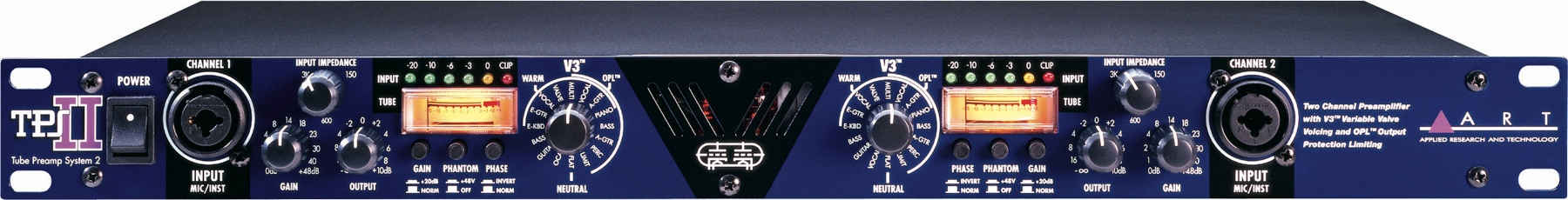 Двухканальный ламповый микрофонный и линейный предусилитель, созданный по специальной технологии ART, позволяет музыкантам получать качественное ламповое усиление при выступлении на сцене или работе в студии. TPS II использует лампу 12AX7 в цепи усиления.
