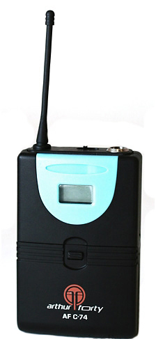 Напоясной UHF-передатчик Arthur Forty C-74 PSC используется в качестве дополнительного передатчика для радиосистем TourGuidе U-960C/B, U-9700C/B, U-9900C/B, образуя с ними мобильный комплект. Применяется для обеспечения качественной связью передвижных групп экскурсантов. Возможности системы позволяют не ограничивать количество слушателей в группе, а за счет 32-х каналов вещания можно совмещать несколько групп, например, когда в составе одной экскурсии присутствуют несколько разноязычных гидов и их слушателей. Оснащается головной гарнитурой.