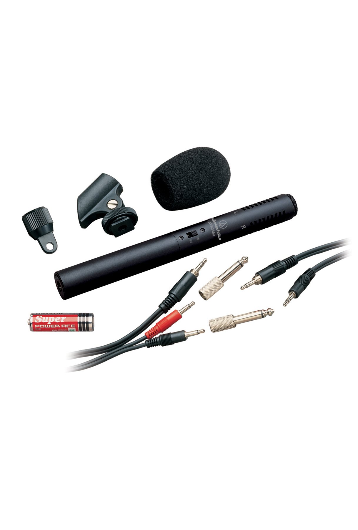 Двойная кардиоидная характеристика направленности Audio-Technica ATR6250 позволяет записать больше звуковой информации. В комплекте вы найдете крепление на камеру, адаптер на микрофонную стойку, два переходника 3,5 мм (1/8” Jack) – 6,3 мм (1/4” Jack), ветрозащиту, батарею типоразмера АА, а также два кабеля: короткий (0,2 м) со стереоразъемами 3,5 мм на обоих концах и длинный (3 м) с одним стереоразъемом 3,5 мм и двумя монофоническими 3,5 мм.