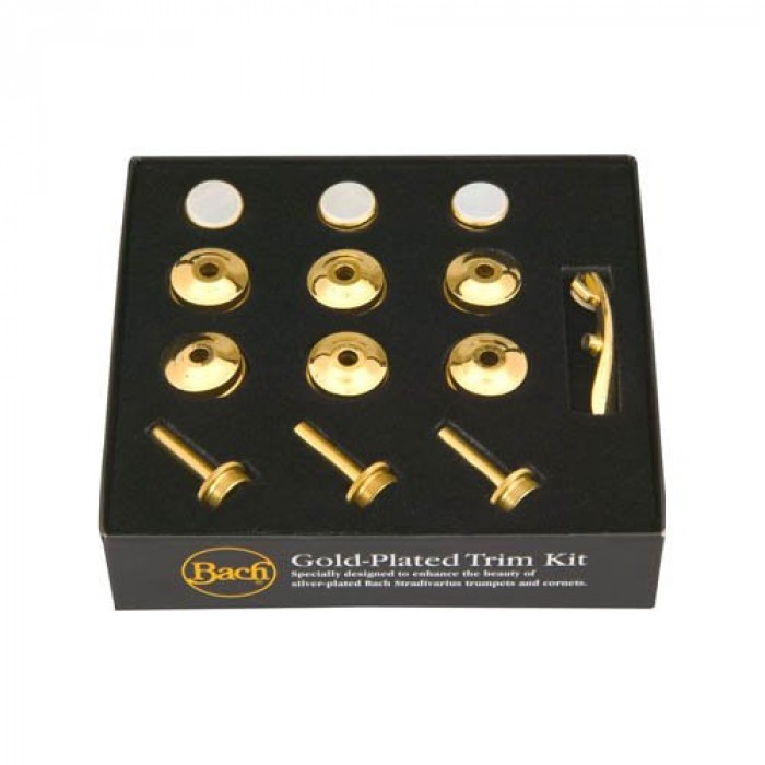 Комплект специально разработан, чтобы подчеркнуть красоту Bach Stradivarius труб и корнетов. Он включает в себя три позолоченные кнопки пистона, верхние и нижние гайки помпы, стойки клапанов, сливной клапан вместе с пружиной, фиксирующую гайку и штифты. Более того, в набор входят еще и винты с шестигранным ключом для быстрой и легкой установки.